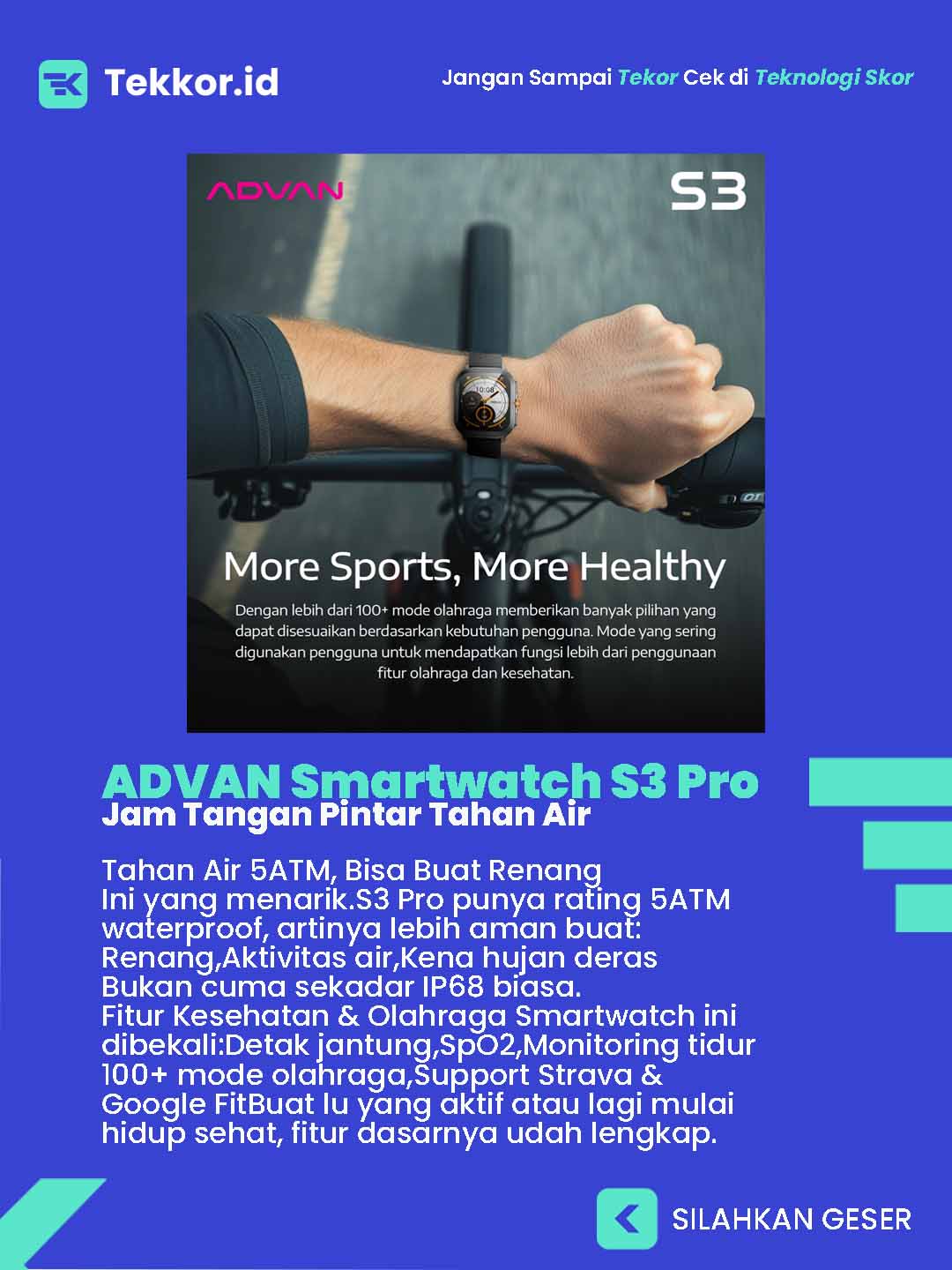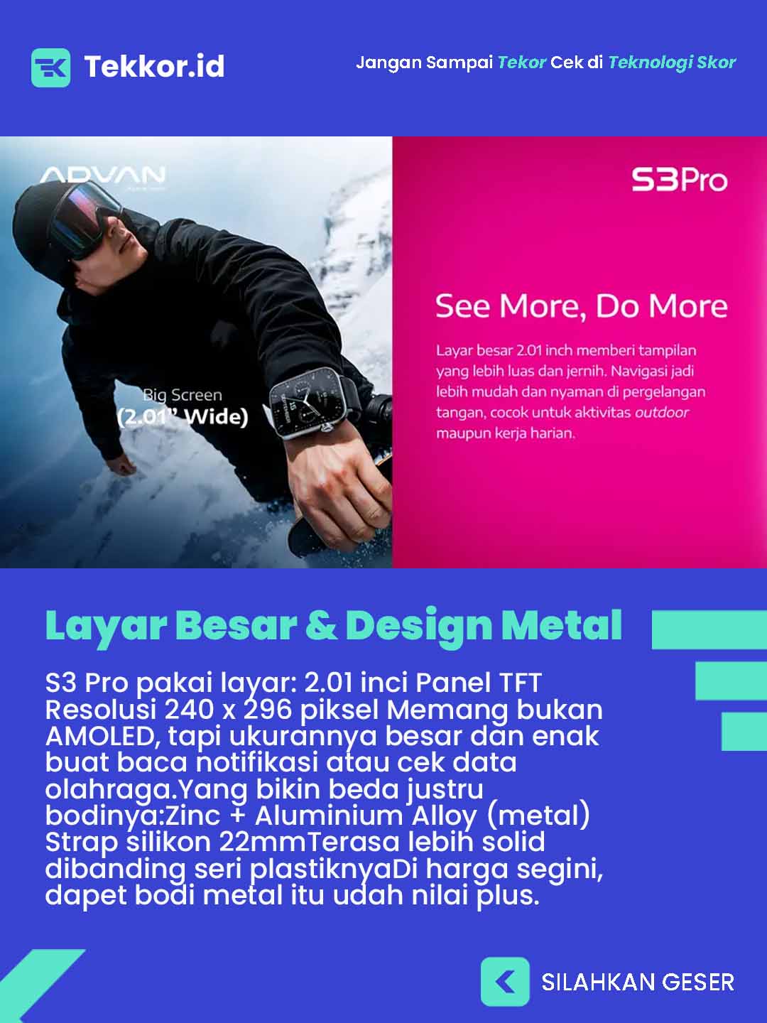 Advan lagi-lagi bikin gebrakan di pasar wearable lewat ADVAN Smartwatch S3 Pro. Jam tangan pintar ini datang dengan desain bodi metal, layar besar 2.01 inci, plus ketahanan air 5ATM — tapi harganya tetap ramah kantong.