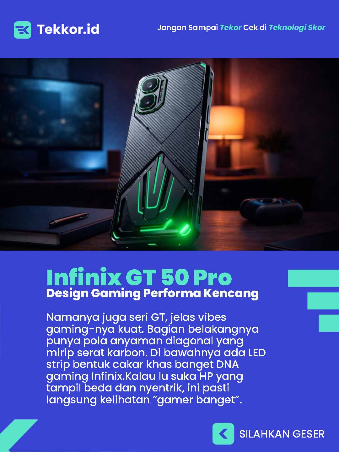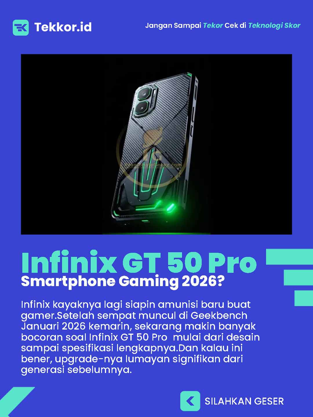 Setelah sempat muncul di Geekbench Januari 2026 kemarin, sekarang makin banyak bocoran soal Infinix GT 50 Pro โ mulai dari desain sampai spesifikasi lengkapnya.
