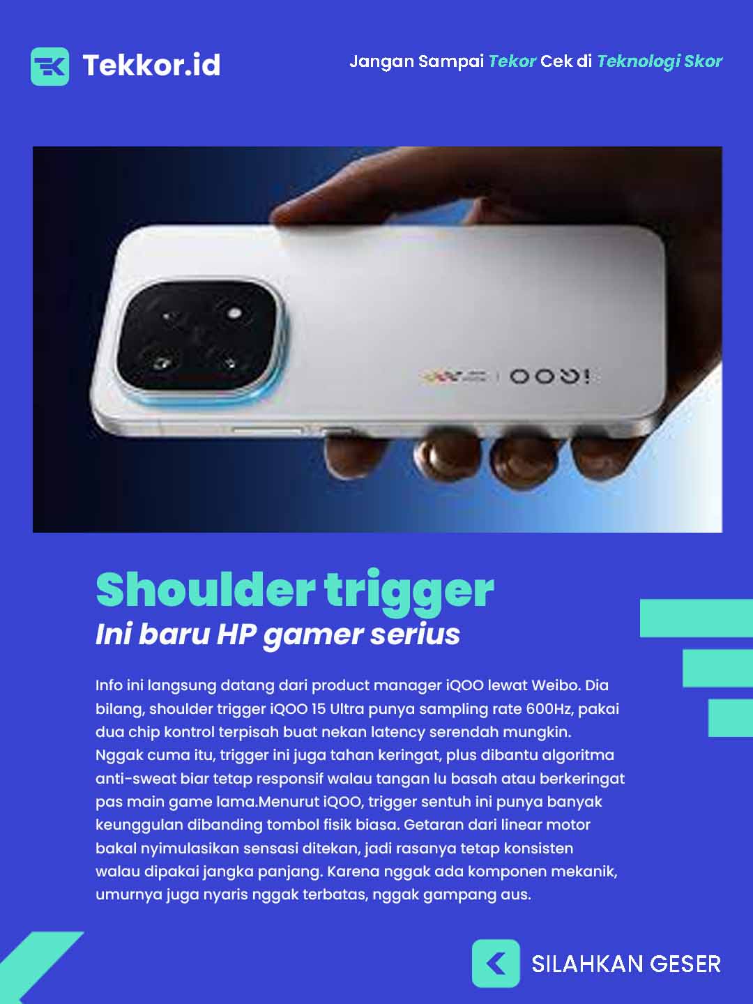 Kalau bocoran ini bener, iQOO 15 Ultra kelihatan makin niat jadi HP gaming serius, bukan sekadar flagship tempelan. Shoulder trigger sentuh dengan haptic itu langkah cerdas—lebih awet, lebih responsif, dan lebih modern dibanding tombol fisik.