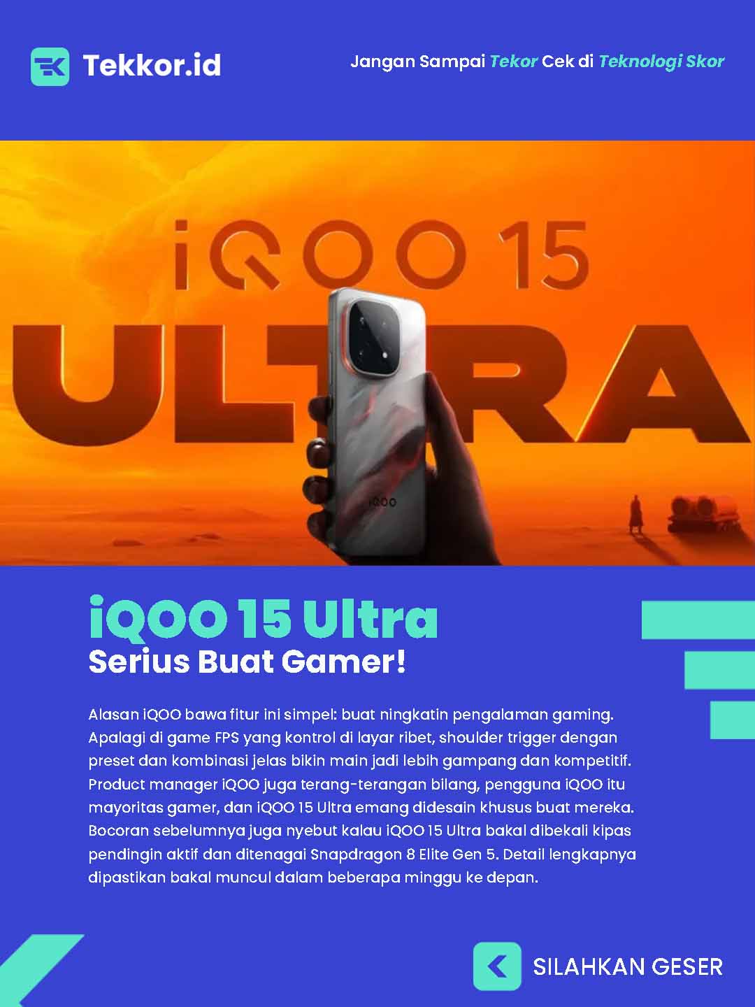 Bocoran sebelumnya juga nyebut kalau iQOO 15 Ultra bakal dibekali kipas pendingin aktif dan ditenagai Snapdragon 8 Elite Gen 5. Detail lengkapnya dipastikan bakal muncul dalam beberapa minggu ke depan.