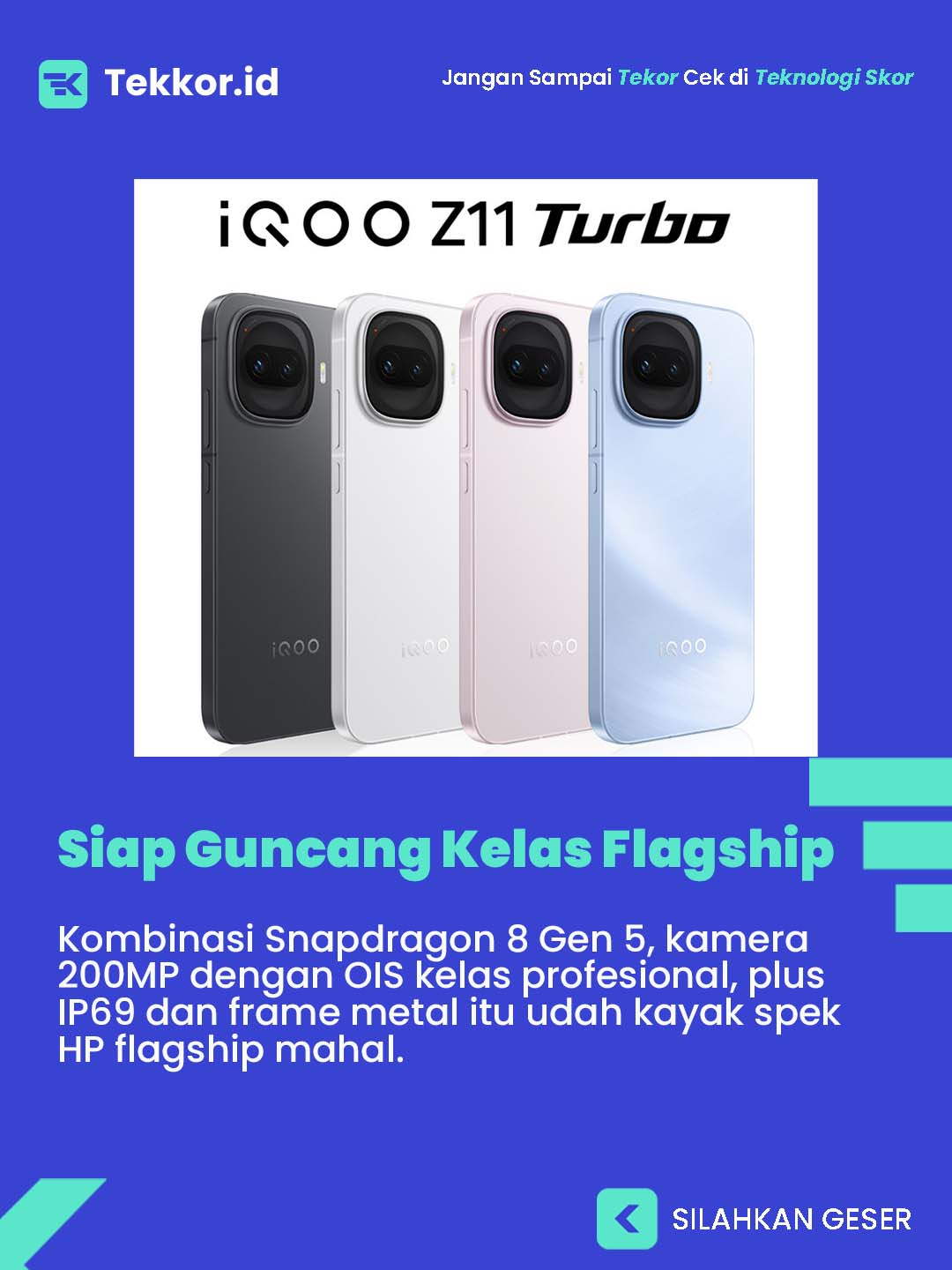 Menurut gue, iQOO Z11 Turbo ini kelihatan makin serius buat ngacak-ngacak kelas flagship killer. Kombinasi Snapdragon 8 Gen 5, kamera 200MP dengan OIS kelas profesional, plus IP69 dan frame metal itu udah kayak spek HP flagship mahal.