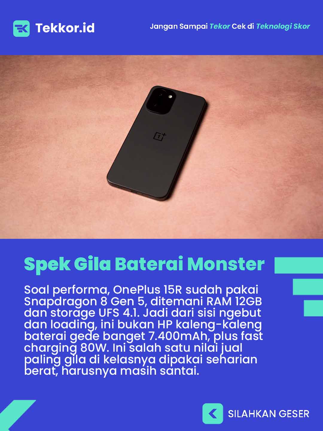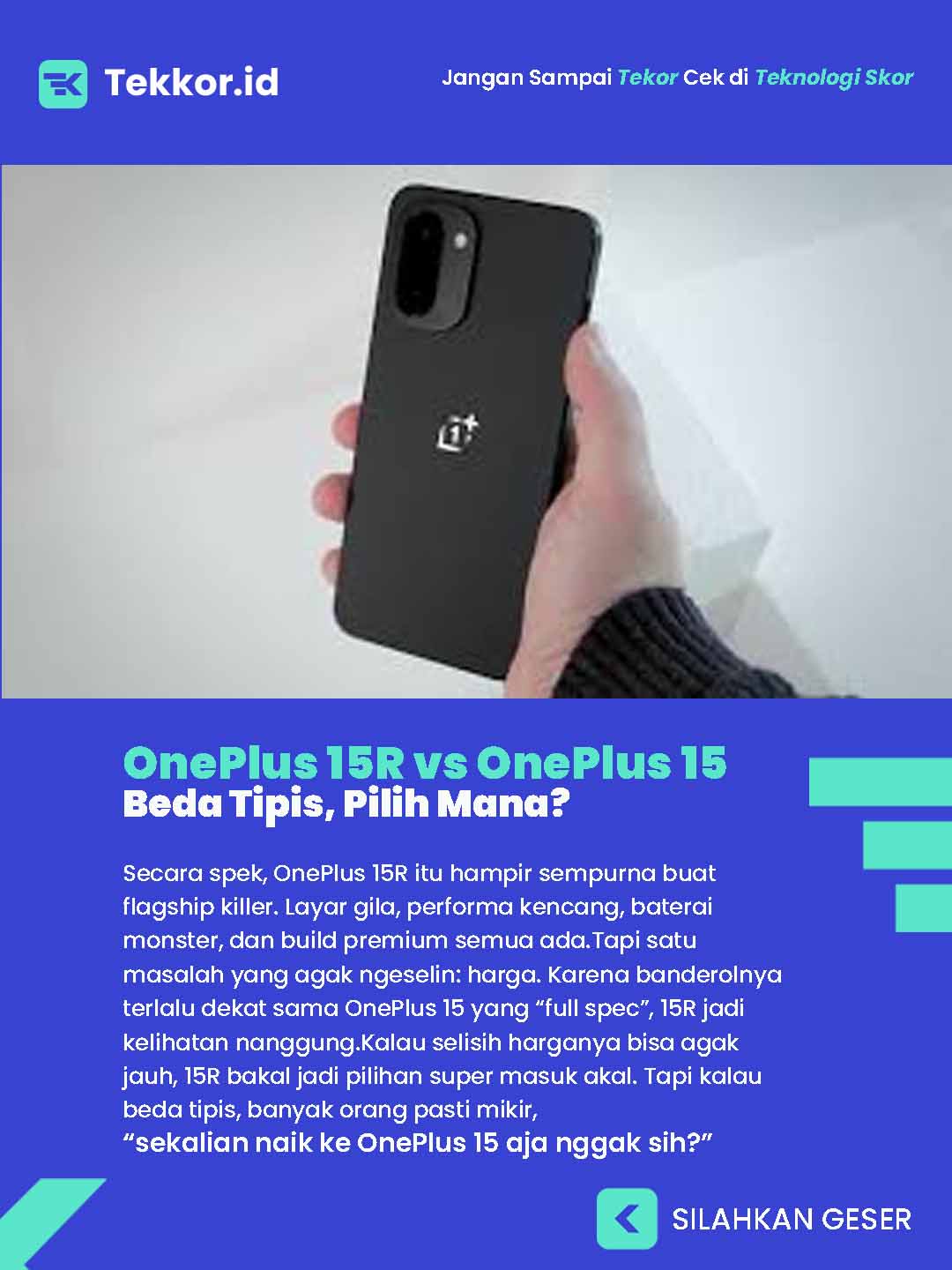 Kalau selisih harganya bisa agak jauh, 15R bakal jadi pilihan super masuk akal. Tapi kalau beda tipis, banyak orang pasti mikir, “sekalian naik ke OnePlus 15 aja nggak sih?”