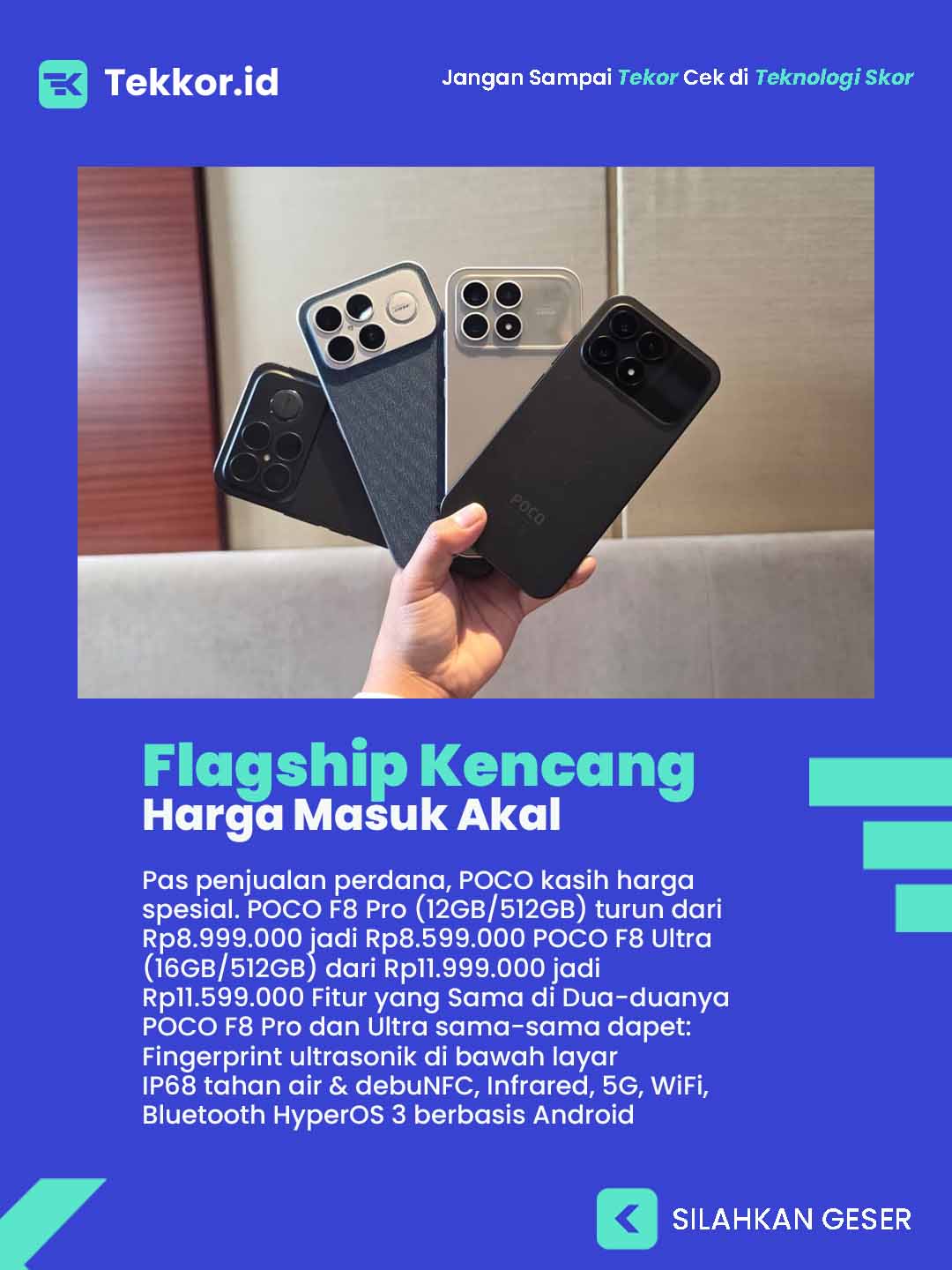 Dengan harga segini, POCO F8 Ultra jelas jadi salah satu flagship paling worth it di 2026, apalagi buat lu yang doyan gaming dan multimedia.