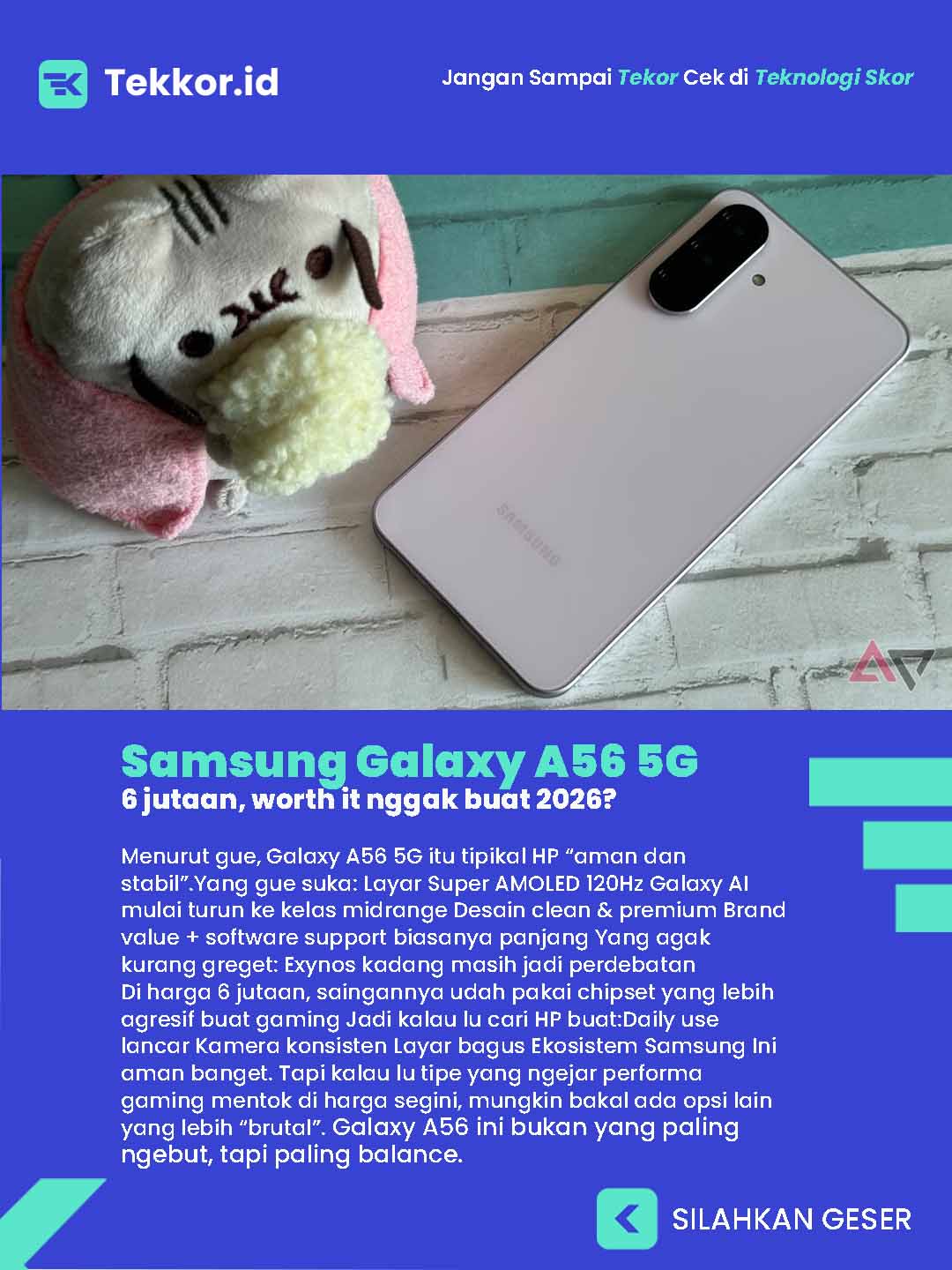 Menurut gue, Galaxy A56 5G itu tipikal HP βaman dan stabilβ.