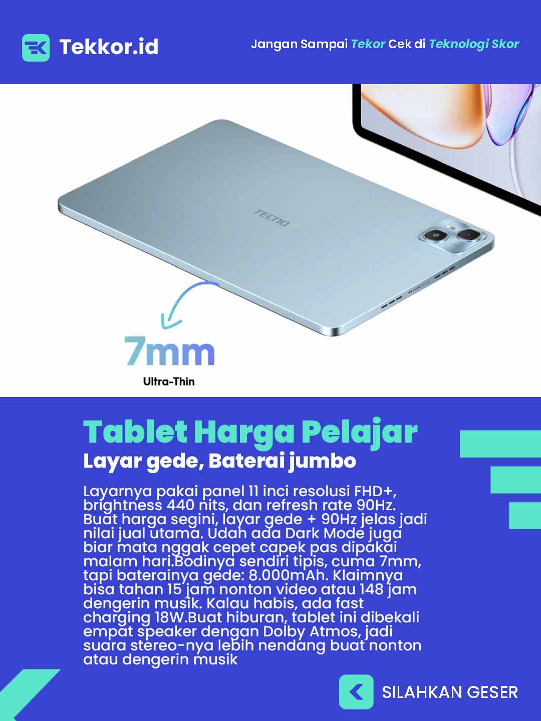 Kalau gue nilai objektif, TECNO MEGAPAD SE ini salah satu tablet paling masuk akal di harga 2 jutaan.